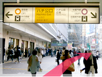 各線渋谷駅「ハチ公出口」を出てスクランブル交差点へ向かいます