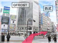 スクランブル交差点で「渋谷QFRONT」側へ渡り、井の頭通りを「西武渋谷店」方面へ進んでください