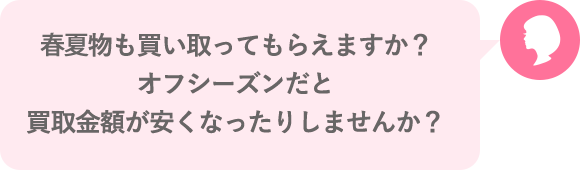 当店は季節外れだったとしても春夏物を1点1点を丁寧にお見積りいたします。