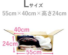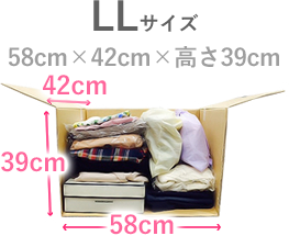 段ボールのサイズは、お品物の量や大きさなどに合わせてLLサイズ、Lサイズ、Mサイズ、Sサイズからお好みのサイズをお選び頂けます。