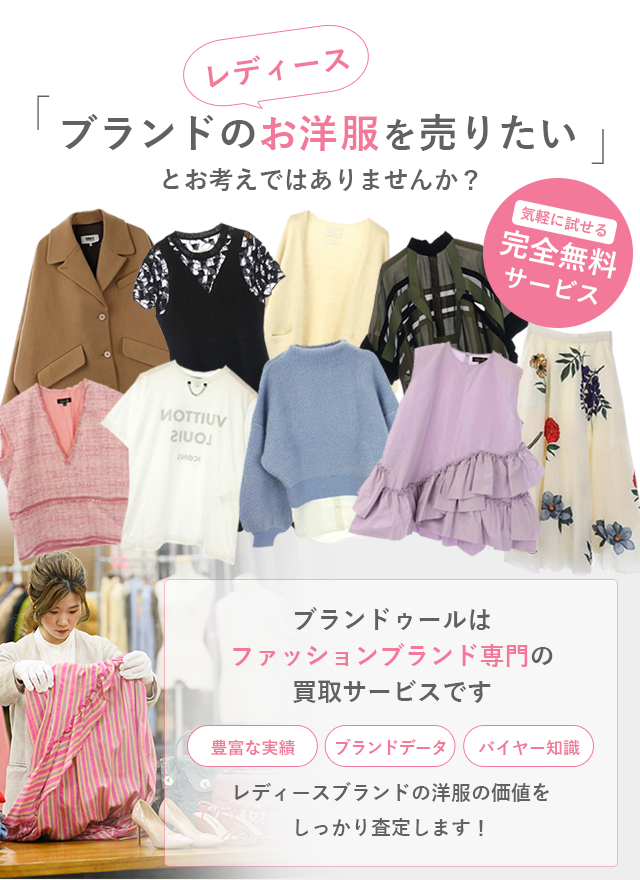 特にワンピースやジャケット、ブラウスは買取強化中です!発売年代が以前のアイテムでもお買取可能なケースが多くなっております!